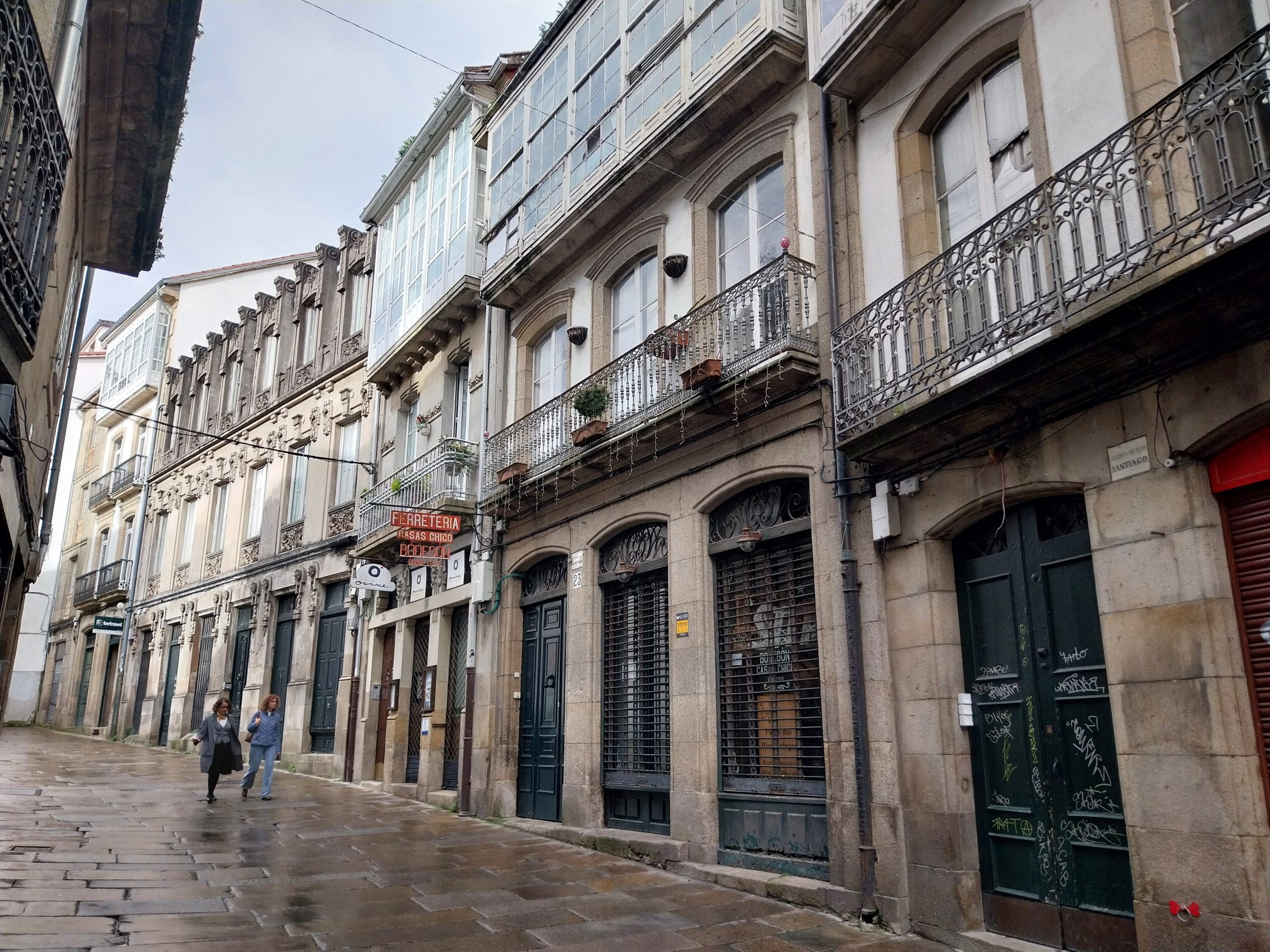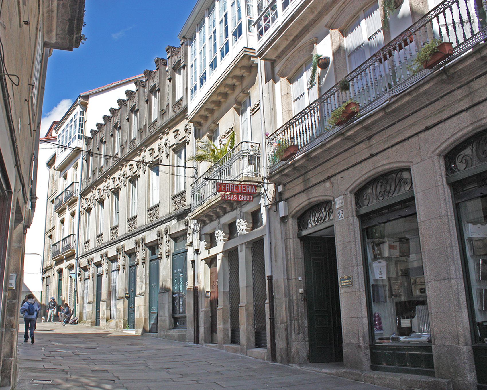 Rúa de Casas Reais a la altura del antiguo solar del hospital de San Miguel.