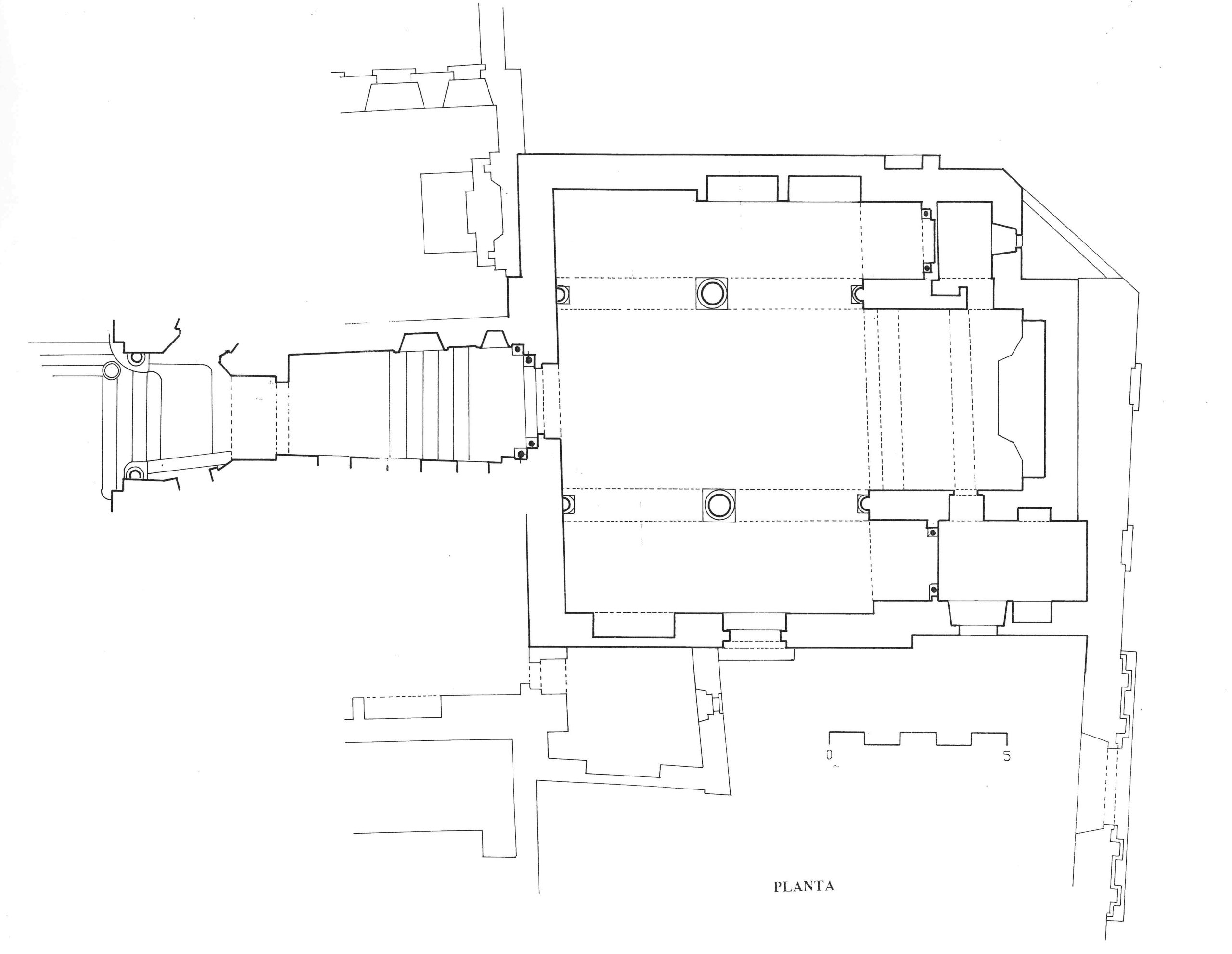 | Planta de la iglesia. (José Antonio Franco Taboada, Santiago Tarrío Carrodeguas (dirs.), A arquitectura do Camiño de Santiago: descrición gráfica do Camiño Francés en Galicia, Santiago [de Compostela], Xunta de Galicia, A Coruña, Universidade da Coruña, D.L. 2000). |