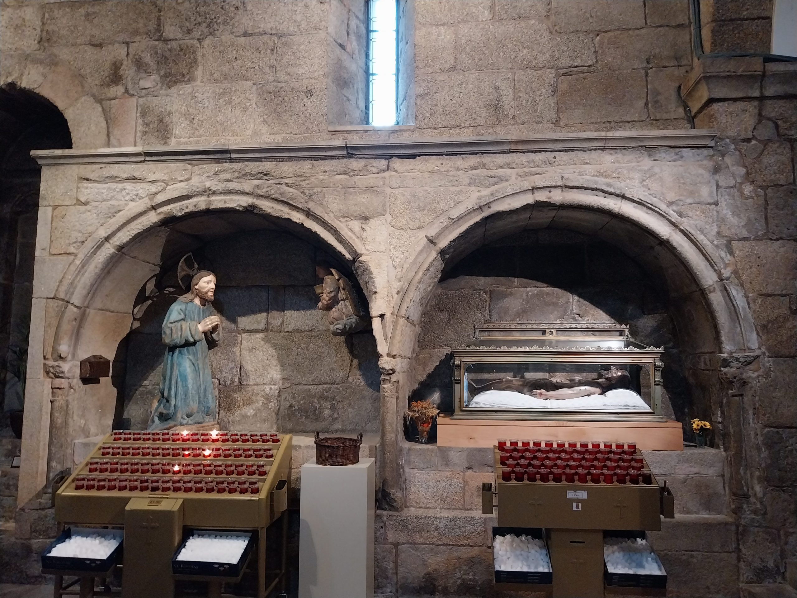 En el muro norte existen dos arcosolios que actualmente acogen sendas imágenes de Cristo. Una de ellas, fechable en el siglo XVI, está labrada en piedra policromada y lo representa durante la oración en el huerto. La segunda es un cristo yacente aproximadamente del año 1700.