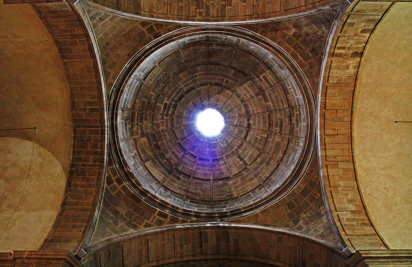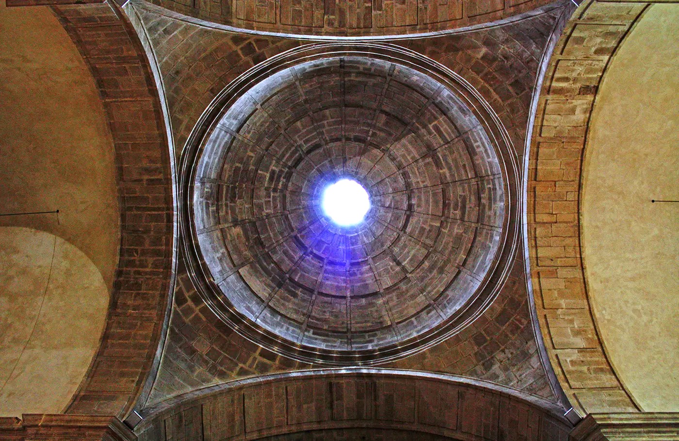Sobre el crucero de la iglesia se eleva una enorme cúpula de media naranja directamente apoyada sobre pechinas lisas. Cuenta con un óculo central y el intradós dividido en hileras de grandes casetones resaltados en relieve. El alzado del crucero se articula por medio de pilastras de orden toscano con arcos de medio punto colocados sobre impostas. Los fustes de las pilastras y el intradós de los arcos están decorados, al igual que la cúpula, con casetones en resaltados. En los extremos de los brazos del crucero se encuentran dos capillas cuadrangulares cubiertas por sendas bóvedas de cañón.