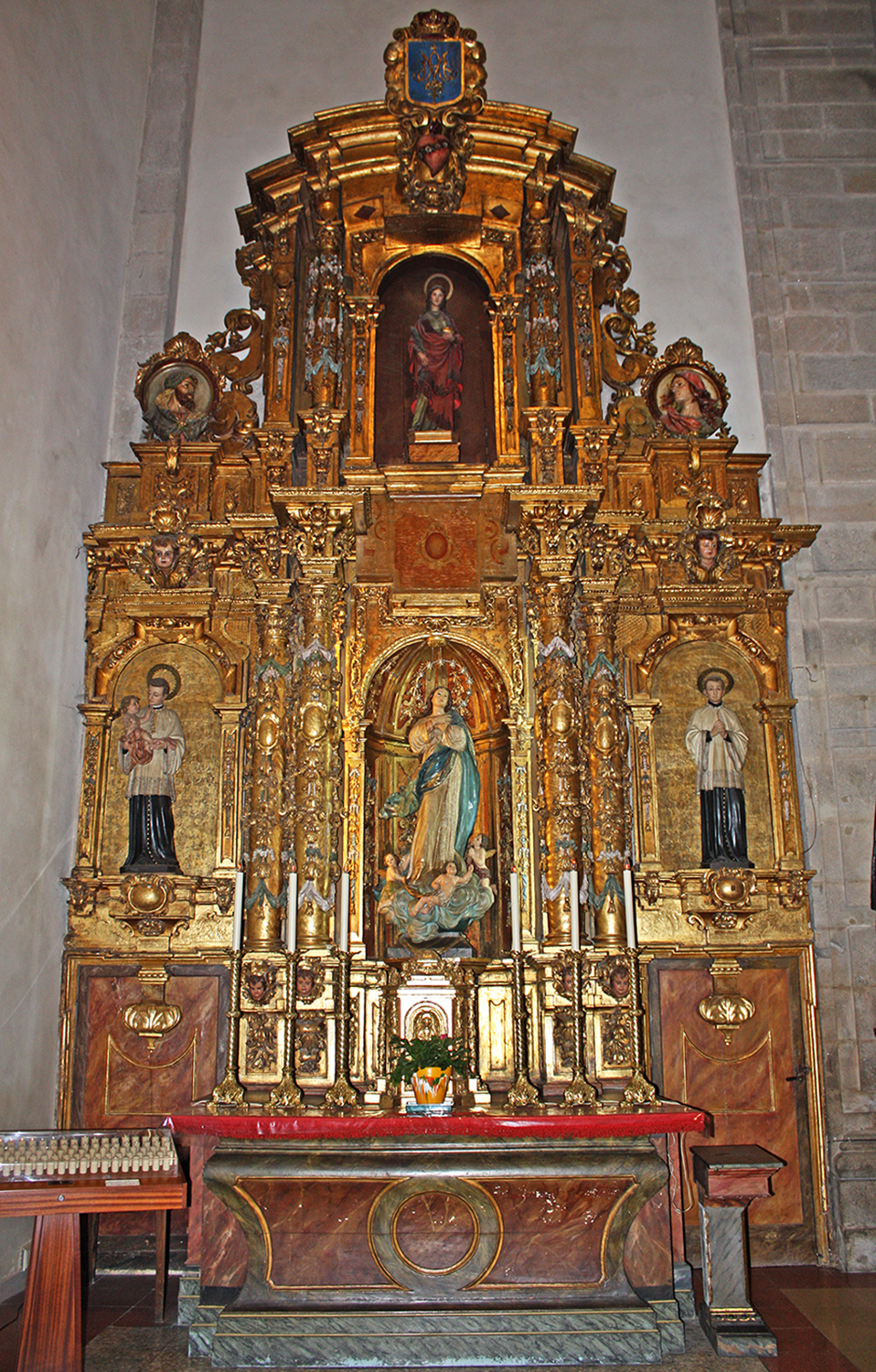 En la capilla del brazo norte del crucero se encuentra el retablo de la Inmaculada realizado en la década de 1740 relacionando su diseño con el taller de Simón Rodríguez. En el cuerpo bajo del retablo, la predela está presidida por un altar realizado en mármoles rojizos y grises y en el centro de esta se ubica el Sagrario que sirve como referencia para ubicar cuatro plintos dorados y decorados en la parte baja con tarjas vegetales y en la parte superior con cabezas de angelotes. Sobre la predela se alza el cuerpo principal de tres calles, separadas las laterales de la central mediante dobles columnas corintias de fustes profusamente decorados por medallones y elementos vegetales.