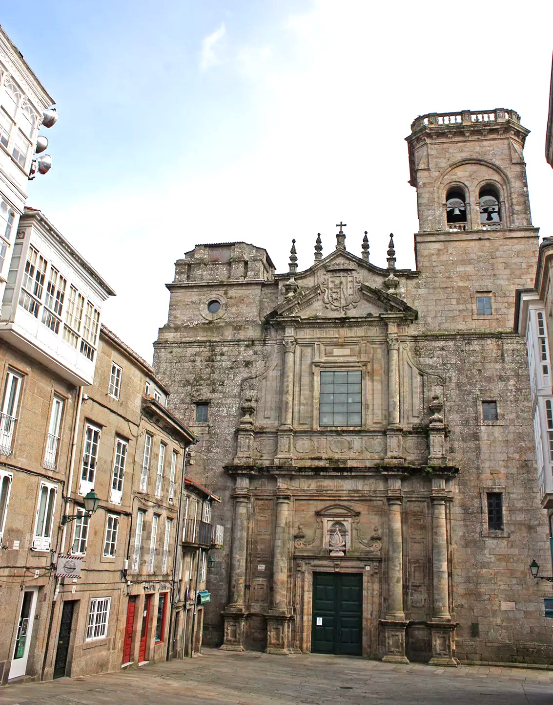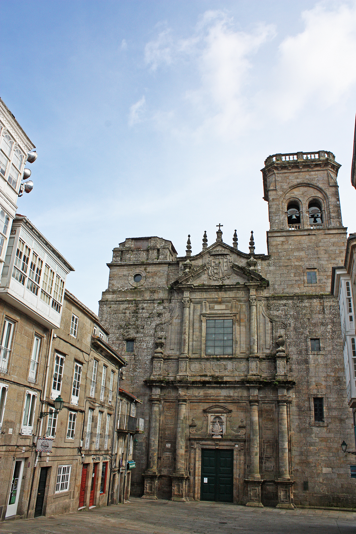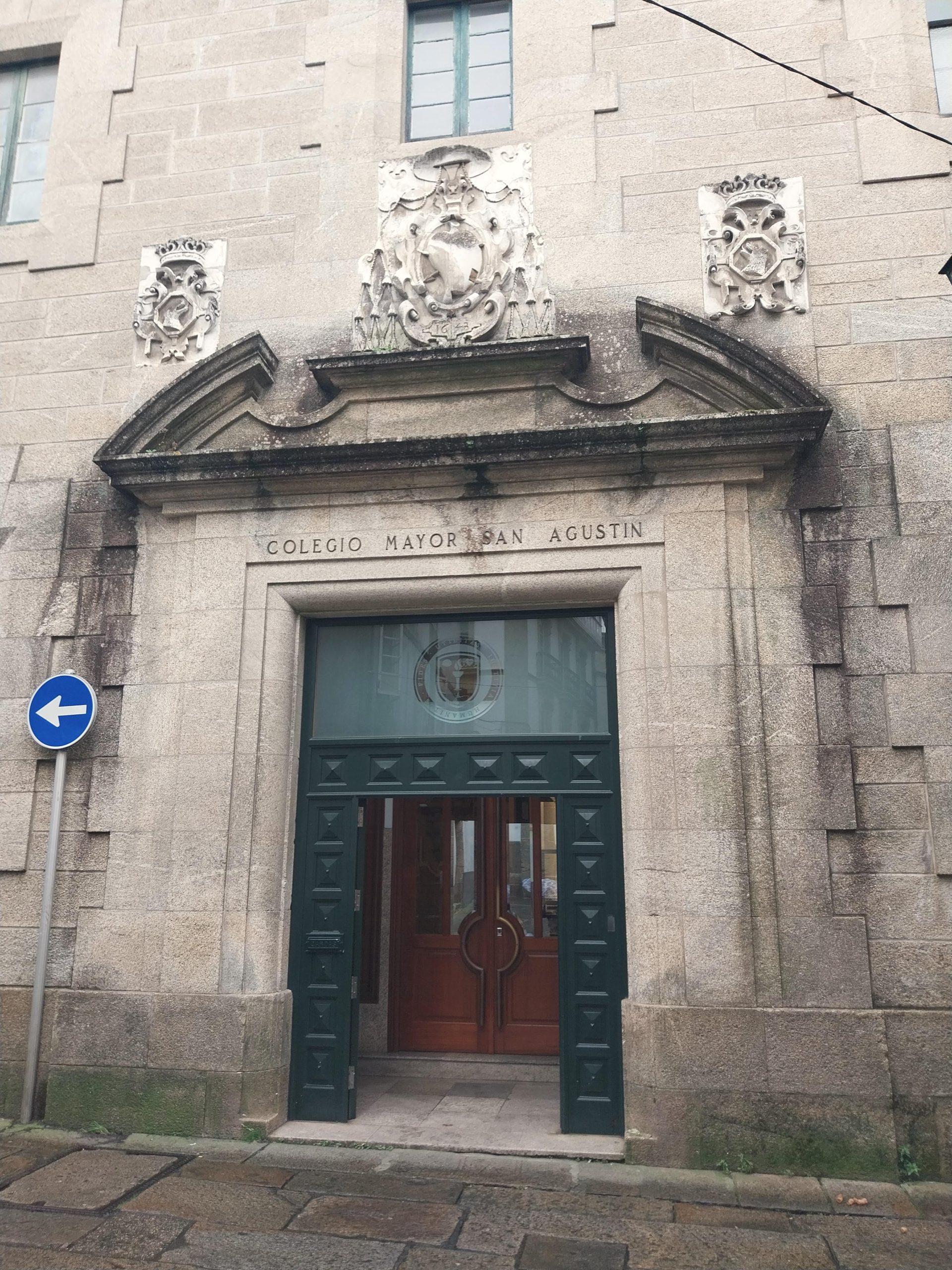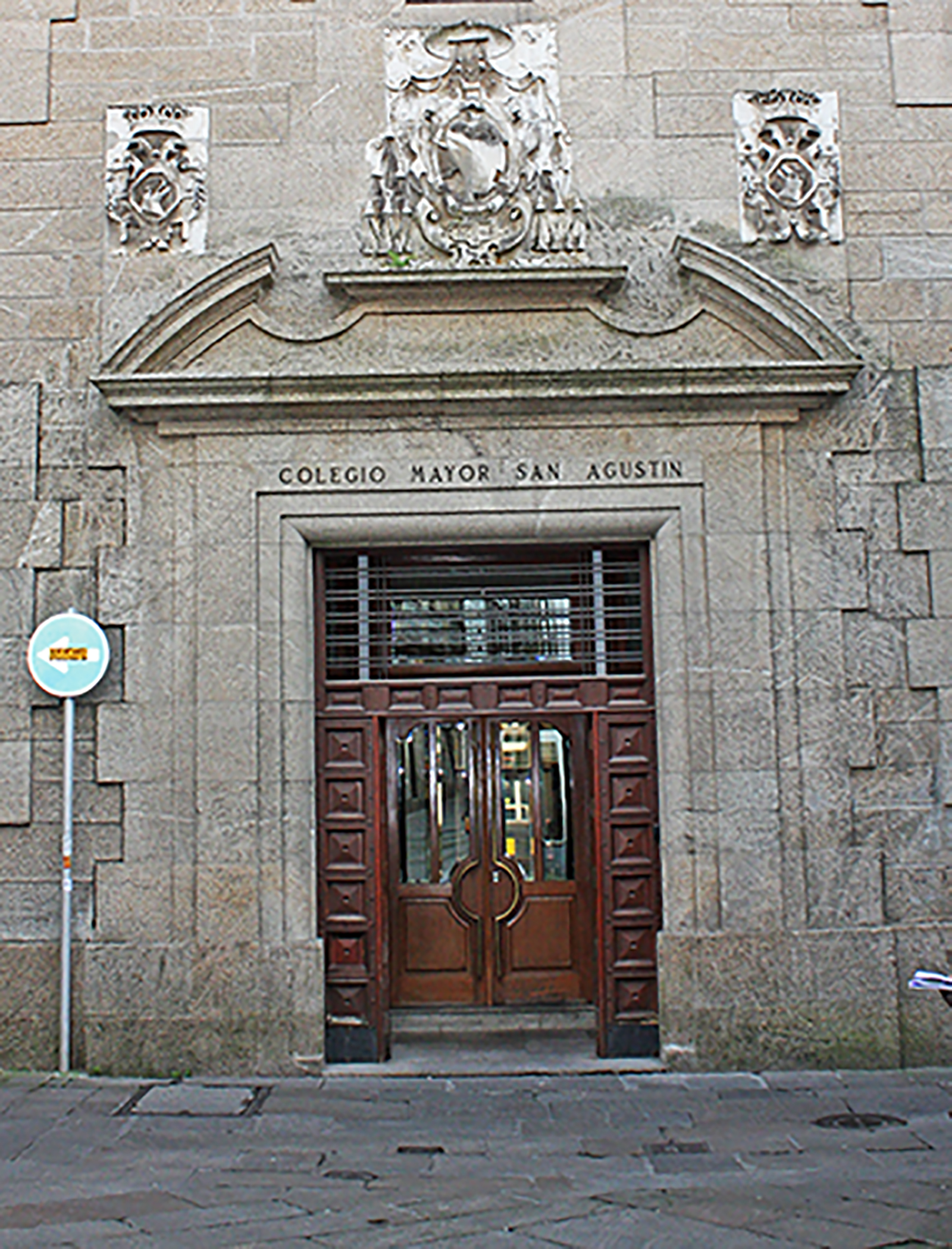 El monasterio de Santo Agostiño fue edificado en el primer tercio del siglo XVII, próximo a la Porta do Camiño, punto en que el Camino Francés desembocaba en el interior del antiguo recinto amurallado de la ciudad de Compostela, al sudeste de la llamada Vía Francígena que conducía directamente a la catedral. Por lo tanto, el monasterio se edificó intramuros, sobreponiéndose a la propia muralla y al solar de la antigua ermita de Nosa Señora da Cerca. Los agustinos abandonaron el monasterio tras la promulgación del Decreto de exclaustración de 1835. Con todo, la iglesia se mantuvo abierta al culto mientras que las antiguas dependencias del convento que se articulaban en torno al claustro se destinaron desde entonces a muy diversos usos. Actualmente albergan el colegio mayor que tienen los jesuitas para residencia de estudiantes universitarios y también, la Escuela de Arte y Superior de Diseño Maestro Mateo.