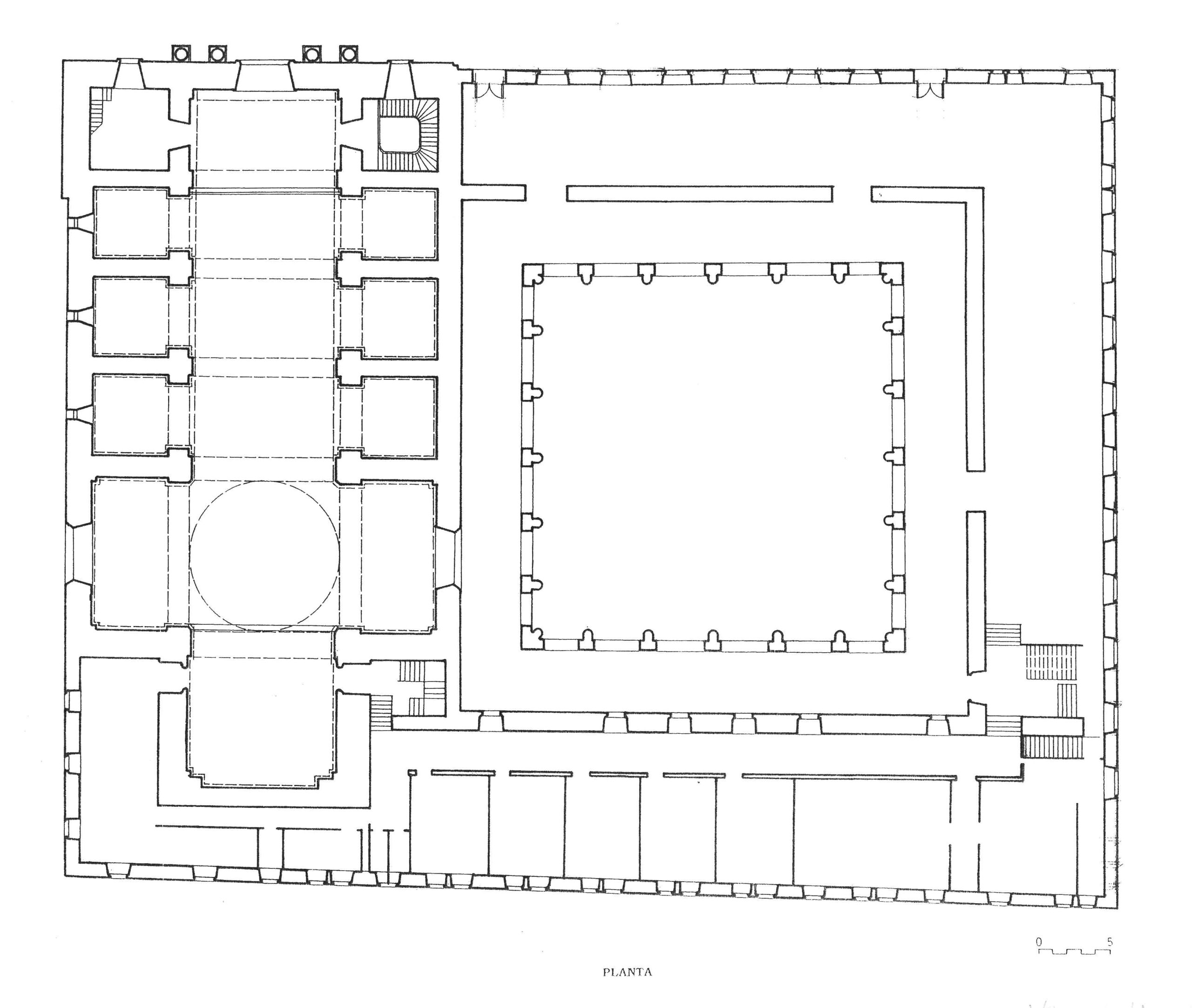 En ese mismo año de 1632 los arquitectos Francisco González de Araujo y Bartolomé Fernández Lechuga realizaron los planos de la nueva iglesia introduciendo un gusto clasicista, que acabaría por imperar también en la fábrica del claustro concluida por el propio Fernández Lechuga. Entre los años 1642 y 1648 Jácome Fernández “hijo” terminó la iglesia habiendo realizado la cúpula del crucero, además de los arcos torales y bóveda de la nave principal.