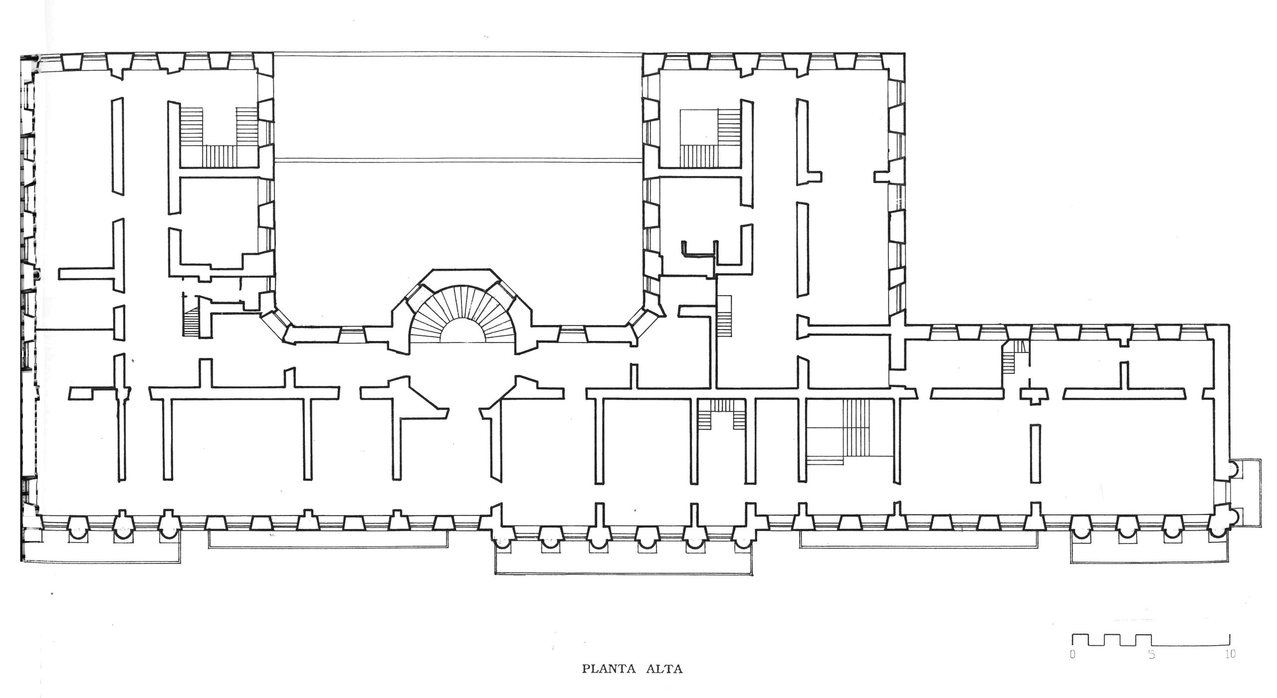 | Planta alta sobre la entrada principal del palacio. (José Antonio Franco Taboada, Santiago Tarrío Carrodeguas (dirs.), A arquitectura do Camiño de Santiago: descrición gráfica do Camiño Francés en Galicia, Santiago [de Compostela], Xunta de Galicia, A Coruña, Universidade da Coruña, D.L. 2000). |
