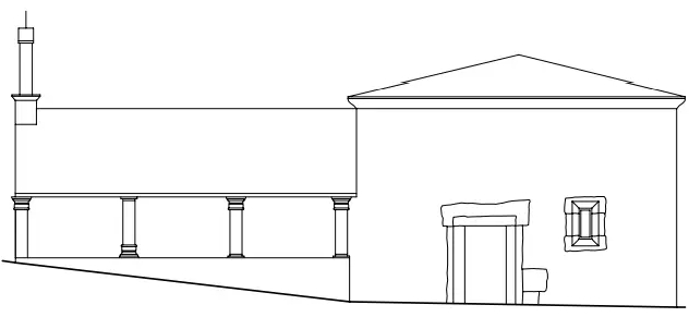 | Alzado del lado sur de la capilla. (José Antonio Franco Taboada, Santiago Tarrío Carrodeguas (dirs.),
