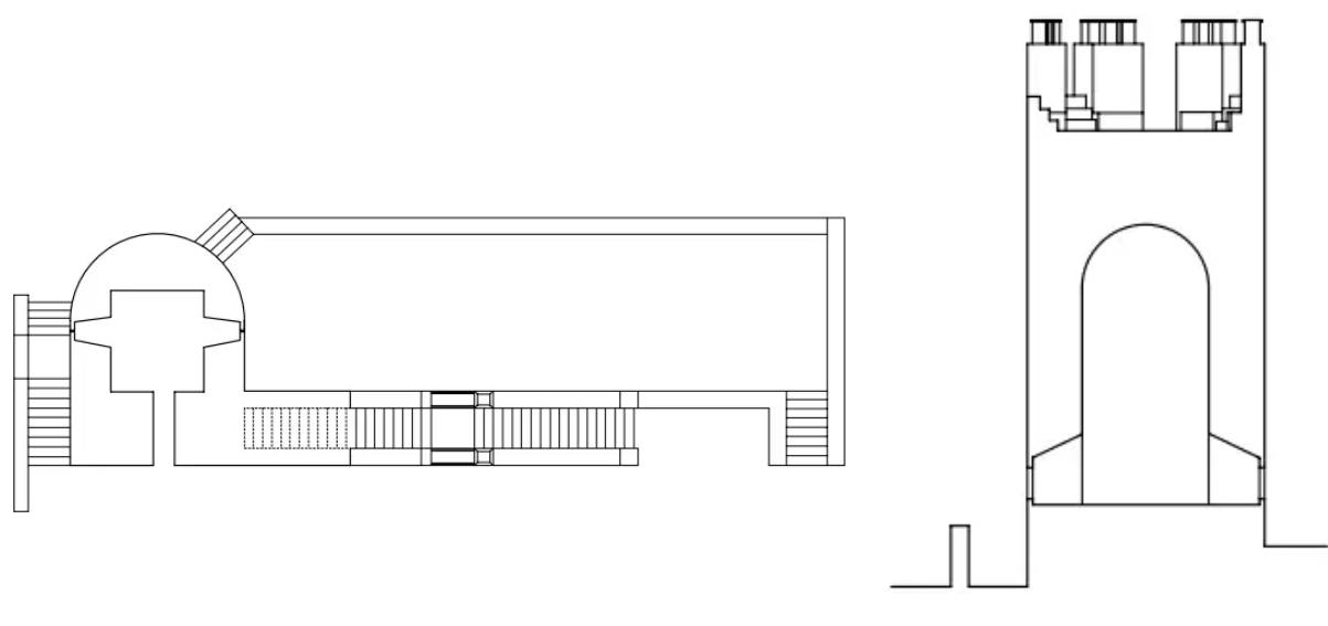 | Plano de planta (izquierda) y alzado de la torre (derecha). (José Antonio Franco Taboada, Santiago Tarrío Carrodeguas (dirs.),