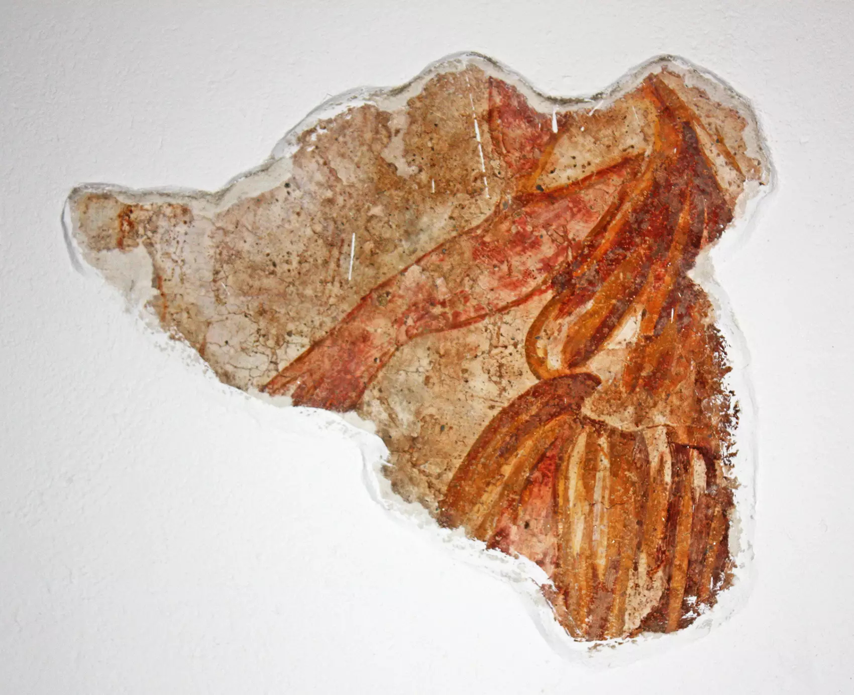 Detalle de los restos de las pinturas murales en la iglesia de Santiago de Triacastela.