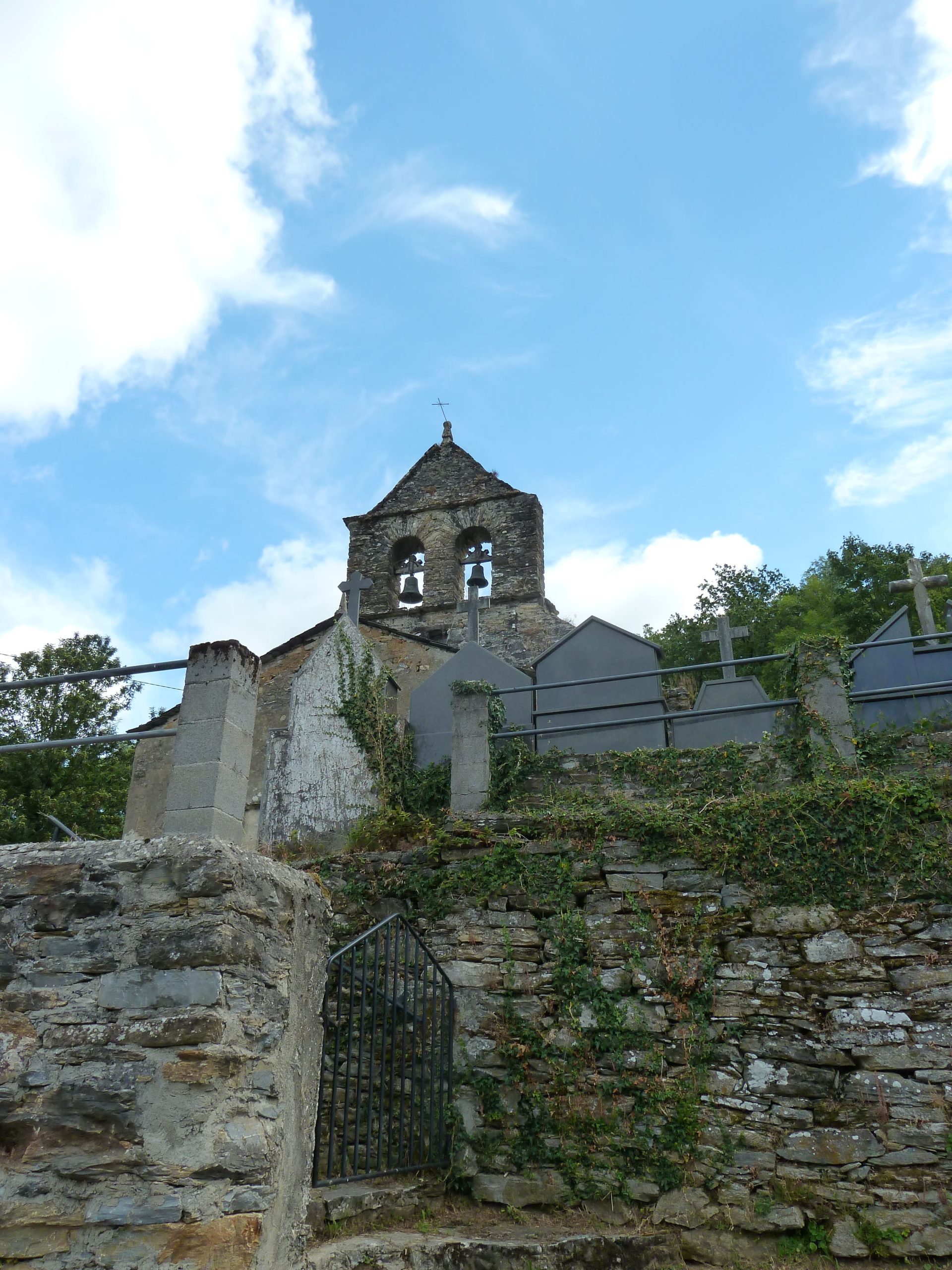 La ubicación de la iglesia desafía al paisaje, elevándose en una fuerte pendiente en un recinto murado que acoge, además del atrio, al cementerio parroquial. El estado actual del templo que hoy podemos visitar es fruto de numerosas reformas, algunas de ellas muy recientes que han modificado la antigua fábrica medieval, aunque esta todavía se puede advertir en algunas partes. Se trata de una iglesia de planta basilical con ábside cuadrado adosado en la cabecera y un cuerpo anexo a esta que hace las funciones de sacristía. Además, la fachada está precedida de un pórtico cubierto y cerrado en los lados norte y sur.