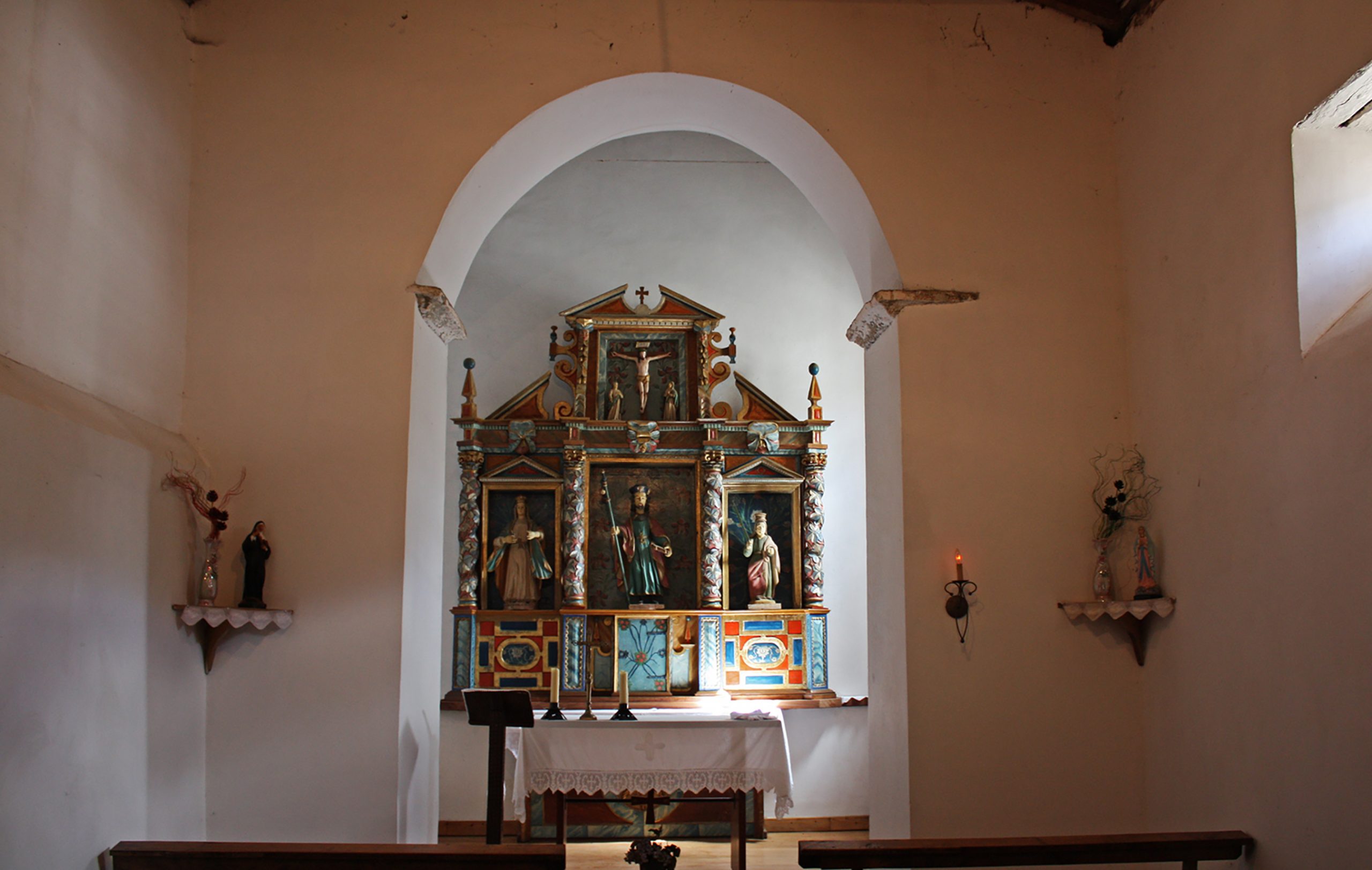 Nave y cabecera se comunican a través de un arco triunfal de medio punto que se apoya sobre sencillas impostas encastradas en el muro. La cabecera, completamente reedificada en la Edad Moderna, es de planta cuadrada y se cubre a cuatro aguas; tiene abierta una sola ventana en el muro lateral izquierdo.